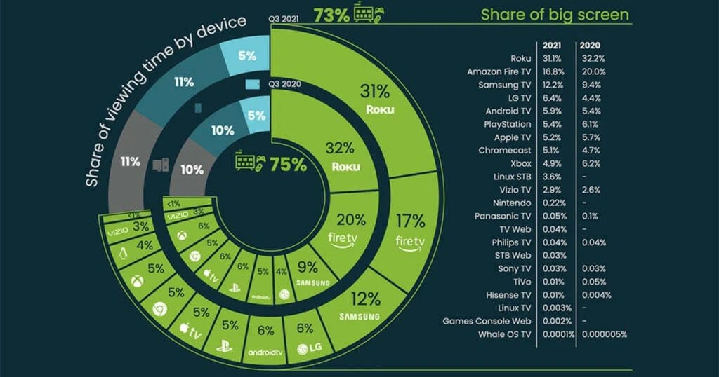 We already mentioned Roku powers 1/3 of every TV sold in the U.S.